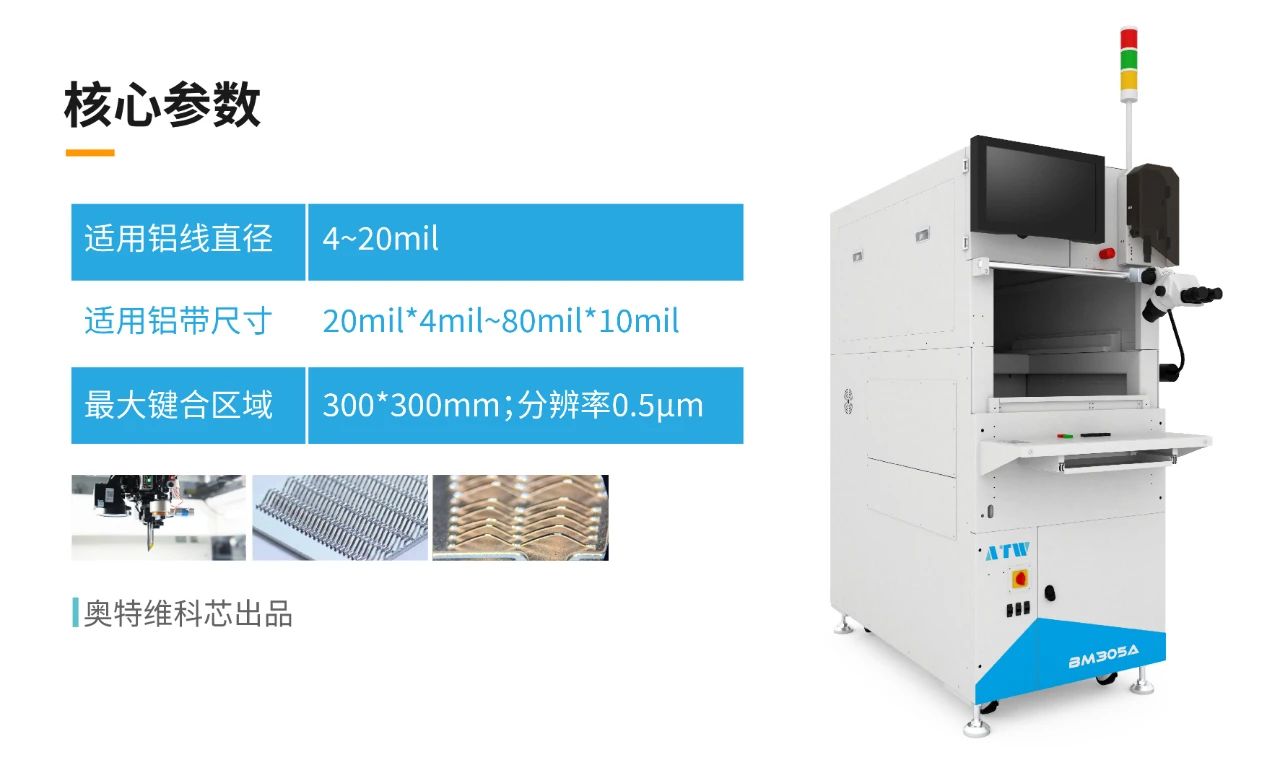 伟德国际1949官网近年来在半导体领域聚焦于封测环节,潜心研发,陆续推出了铝线键合机、装片机、AOI检测设备、晶圆划片机等多款设备。其中半导体键合设备已获得数家知名企业的小批量订单,取得客户的认可。
